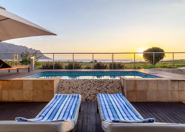 Nestled 7 km from the Blue Rock Adventure Park, the beachfront "Villa Montemar' Luxury Villa For 6 On The Beach With Pool Gordons Bay features a private pool along with a patio to help guests unwind. Featuring patio views, this 3-bedroom villa invites guests to visit the Bikini Beach, located about 10 minutes away by car.